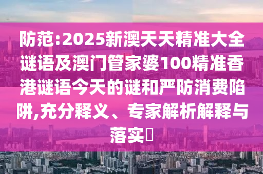 防范:2025新澳天天精準大全謎語及澳門管家婆100精準香港謎語今天的謎和嚴防消費陷阱,充分釋義、專家解析解釋與落實?
