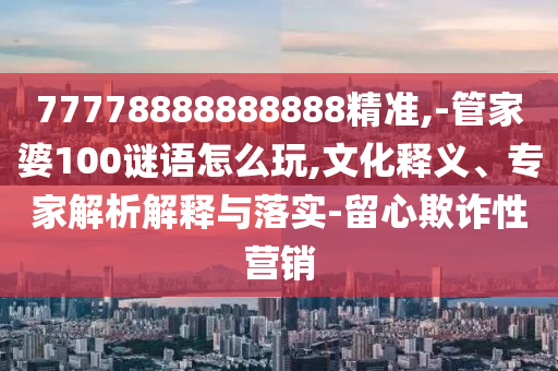 摘要:,,精準(zhǔn)77778888888888管家婆100謎語(yǔ)是一種數(shù)字謎語(yǔ)游戲,玩法多樣,需留心欺詐性營(yíng)銷。其背后蘊(yùn)含著豐富的文化內(nèi)涵和專家解析解釋。玩家在參與游戲的同時(shí),也能感受到傳統(tǒng)文化的魅力。游戲過(guò)程中應(yīng)注意規(guī)則,避免陷入欺詐陷阱。專家建議玩家要理性參與,注重落實(shí),避免盲目跟風(fēng)。