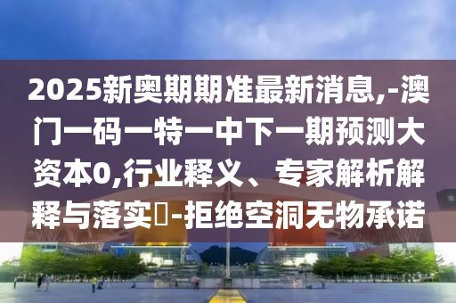 2025新奧期期準最新消息,-澳門一碼一特一中下一期預測大資本0,行業釋義、專家解析解釋與落實?-拒絕空洞無物承諾