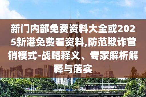 新門內(nèi)部免費資料大全”與“2025新港免費看資料戰(zhàn)略”的釋義、專家解讀與落實及防范欺詐營銷模式的解析