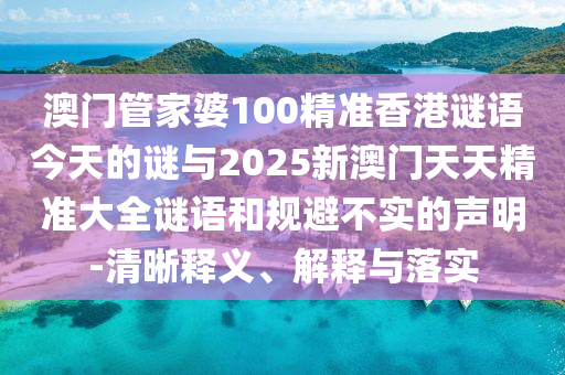 摘要:,,本文介紹了澳門管家婆100精準香港謎語、2025新澳門天天精準大全謎語等相關內容,并強調了規避不實聲明的重要性。文章指出,對于這類謎語,需要清晰釋義、解釋與落實,以確保信息的準確性和真實性。提醒公眾要警惕不實信息,避免受到誤導。