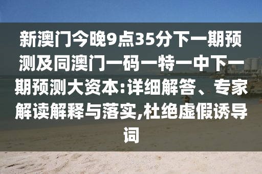 新澳門今晚9點35分下一期預測及同澳門一碼一特一中下一期預測大資本,杜絕虛假誘導詞”的詳細解答、專家解讀與落實