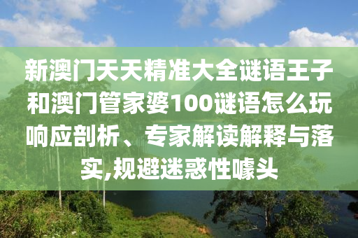 新澳門天天精準大全謎語王子和澳門管家婆100謎語怎么玩響應剖析、專家解讀解釋與落實,規避迷惑性噱頭