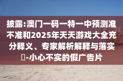 披露:澳門一碼一特一中預(yù)測準(zhǔn)不準(zhǔn)和2025年天天游戲大全充分釋義、專家解析解釋與落實(shí)?-小心不實(shí)的假廣告片