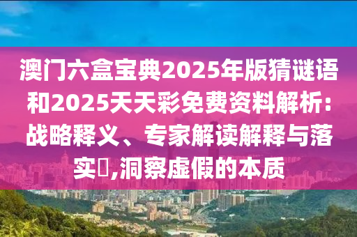 澳門六盒寶典2025年版猜謎語和2025天天彩免費資料解析的戰(zhàn)略釋義、專家解讀解釋與落實?