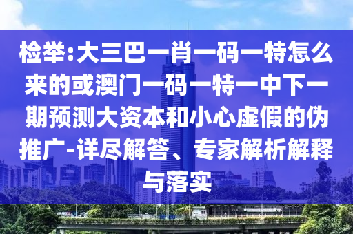 關于檢舉“大三巴一肖一碼一特”及澳門一碼一特預測等相關問題的詳盡解答、專家解析與落實,以及警惕虛假宣傳的提醒