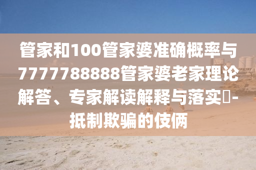 摘要:,,本文探討了管家和100管家婆的準確概率,以及7777788888管家婆老家理論的相關問題。文章還邀請了專家進行解讀和解釋,旨在幫助人們更好地理解和應用這些理論,同時抵制欺騙行為。文章強調了識別和防范欺騙行為的重要性,并提供了相關的知識和指導。