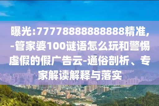 摘要:近日曝光了精準號碼77778888888888的虛假廣告問題,引起了廣泛關注。針對這種現象,專家對管家婆100謎語游戲進行了通俗剖析和解讀,提醒廣大玩家警惕虛假廣告陷阱。本文旨在介紹該游戲的玩法,同時揭示虛假廣告的危害,并呼吁相關部門加強監管,確保游戲的健康發展和玩家的合法權益。摘要字數在100-200字之間。
