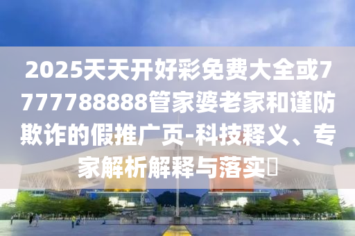 摘要:本文介紹了關于2025天天開好彩免費大全或7777788888管家婆老家等推廣頁面的科技釋義和專家解析。提醒公眾謹防欺詐,解釋相關概念的真正含義,并強調落實防范措施的重要性。摘要字數控制在100-200字以內。