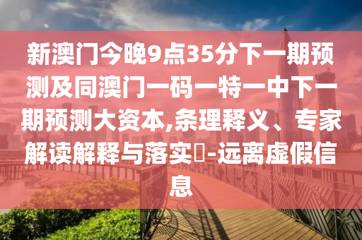 新澳門今晚9點(diǎn)35分下一期預(yù)測及同澳門一碼一特一中下一期預(yù)測大資本:條理釋義、專家解讀解釋與落實(shí)?