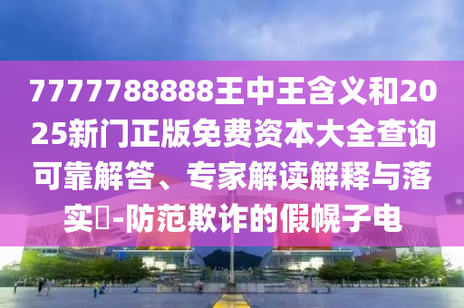 摘要:,,關于數字組合“7777788888王中王”的含義尚無法確定,需進一步了解相關背景和文化內涵。關于2025新門正版免費資本大全查詢,可以提供可靠的解答,并有專家進行解讀解釋和防范措施。需注意防范欺詐的假幌子電,確保信息安全和財產安全。