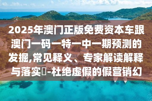 2025年澳門正版免費資本車跟澳門一碼一特一中一期預測的發掘,常見釋義、專家解讀解釋與落實?-杜絕虛假的假營銷幻